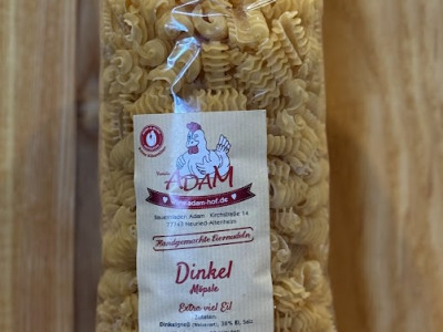 Diese Dinkel-Nudeln bestehen aus Dinkelgrieß und einem hohen Anteil an Ei. Sie liefern einen festen Biss und einen leicht nussigen Geschmack.